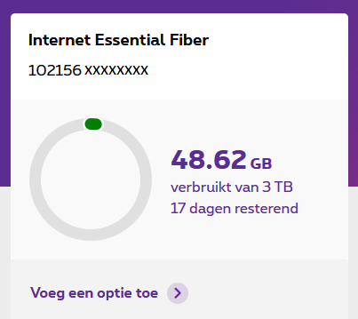 • In de praktijk heb ik: 50/8, 3TB per maand.