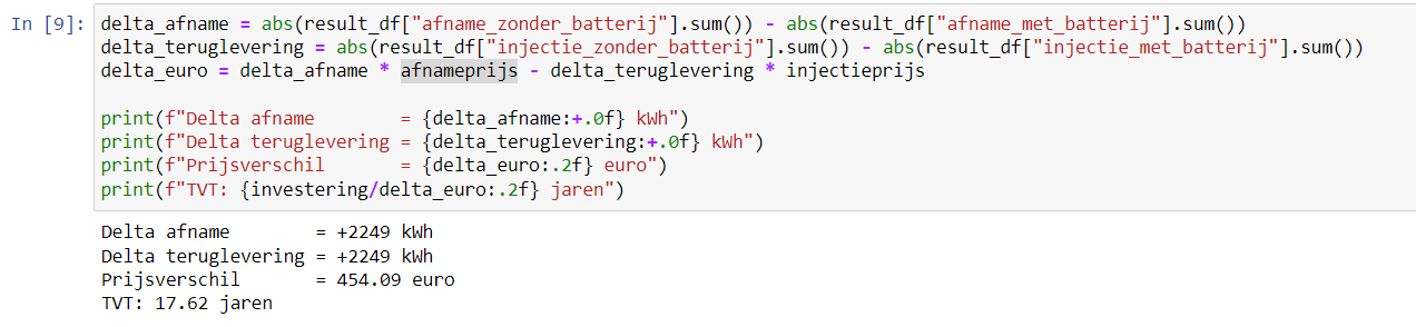 Het script zal alle kwartierwaardes meenemen en uitrekenen wat de invloed van de batterij is.