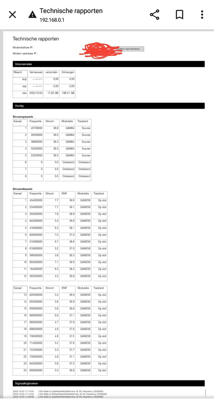 Das hetzelfde als je u signaal waarde met de bbox tool uitleest. Maar bij orange kun je dit via de modem.philippe_d schreef: 24 okt 2022, 18:38En wat exact zie je hier of wat kan je eruit concluderen?Data technicus schreef: 24 okt 2022, 16:43 Je kunt ook eens op deze pagina kijken wat u waarden van de modem doen als je er een langere kabel tussen hangt.