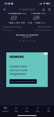 Heb internet Max fiber van Proximus, ik zit op 350/50.