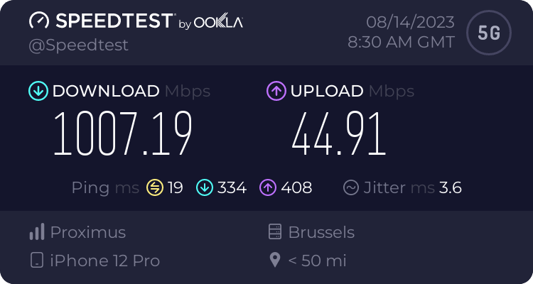 En vooral van het beschikbare spectrum. Op sommige plaatsen worden de typische 4G frequenties deels gebruikt om toch maar dat 5G icoontje op de telefoon te tonen.Gray schreef: 06 sep 2023, 06:54 Ik denk dat de speedtest van veel parameters afhankelijk zijn.