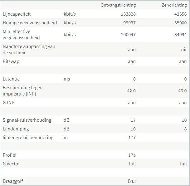 Een goede modem (de nieuwe Internet Box, een Fritz!Box) zal volautomatisch op de hoogst mogelijke up- en download snelheid syncen, op basis van de SNR (target SNR 6dB).
