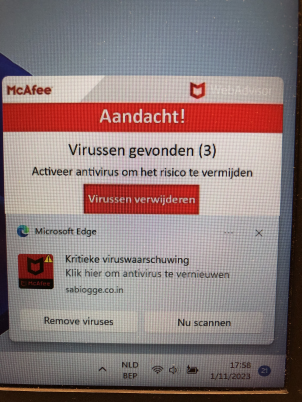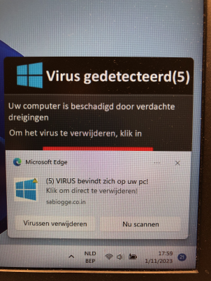 Op de laptop van mijn echtgenote (W11) verschijnen er plots pop-ups met de melding dat er meerdere virussen zijn gedetecteerd.