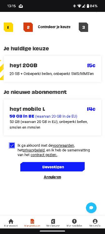 Voor mij persoonlijk is het aanbod zowel verbeterd als verslechterd. Als ik bij 'Hey!' zat, zou ik voor mezelf ook de 20 GB @ €10 genomen hebben, en even op mijn tandjes bijten tot ik voldoende boost heb opgebouwd. Hun 50 GB @ €14 is daarvoor een mooi alternatief, maar uiteindelijk - althans momenteel - meer dan ik zou nodig hebben qua data en voor sommige maanden misschien net te weinig qua belminuten, wat je naar een duurder abonnement dwingt...