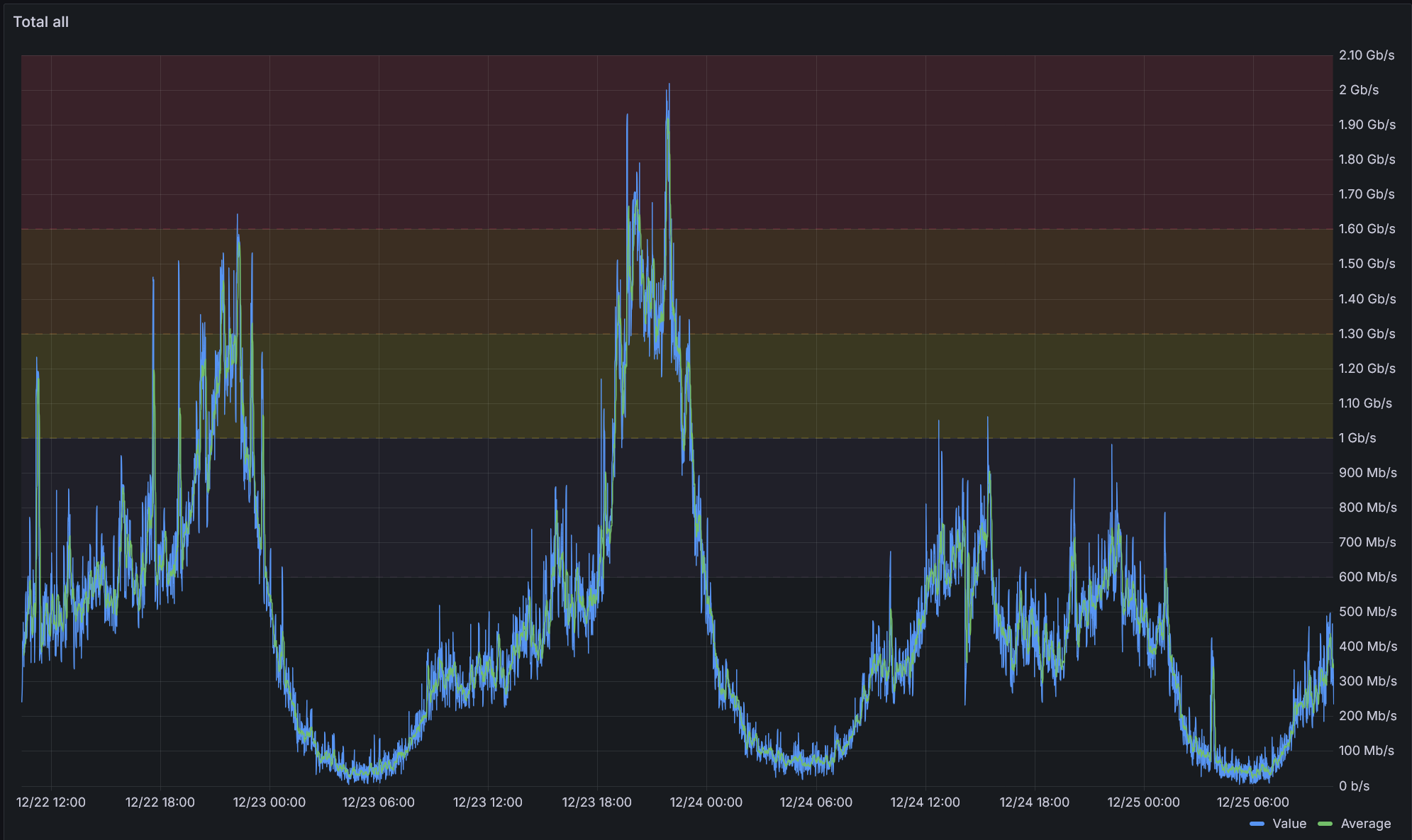 Hoe kom je aan deze grafiek?jan5787 schreef: 25 dec 2024, 10:28 Bij ons is het momenteel zeer rustig op de coax-node. Algemeen worden er tijdens de feestdagen bijna nooit zo'n hoge pieken gehaald als op weekdagen tussen 20-23h. Mij lijkt het dus straf dat het alleen traffic shapping zou zijn, maar je weet natuurlijk nooit met Telenet/Orange.