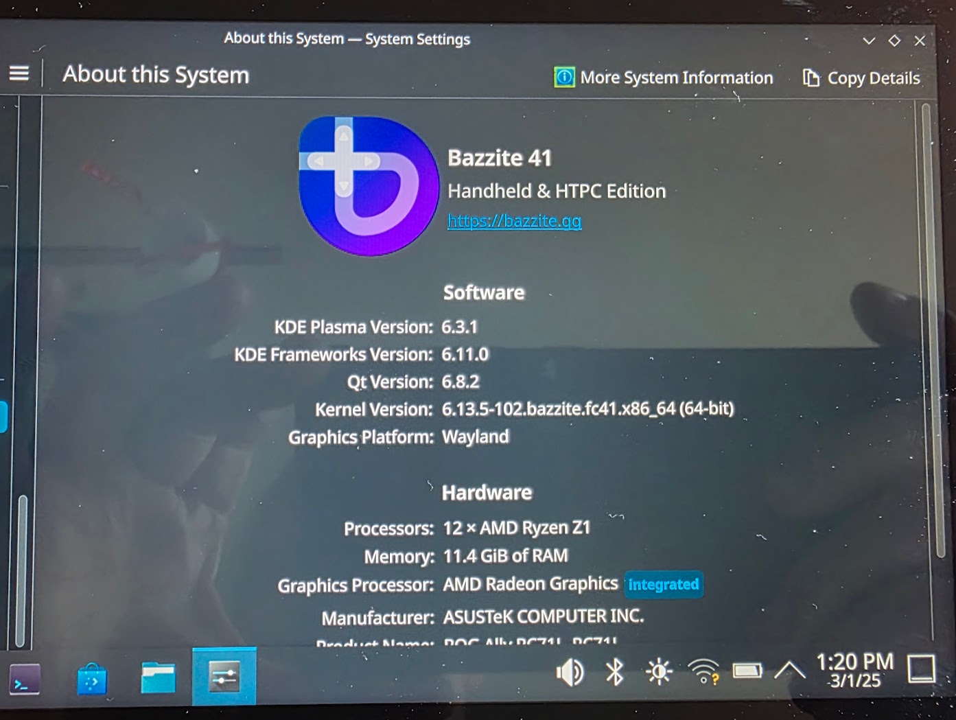 Komt out of the box met Windows 11 Home, maar ik heb er zelf Bazzite op gezet (wat SteamOS is). Werkt enorm goed! (beter dan Windows