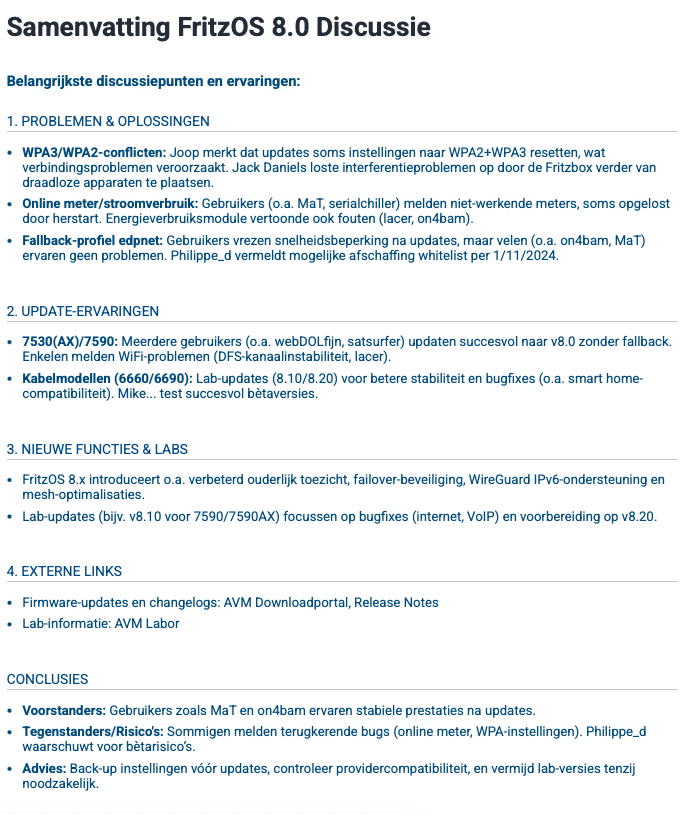 Dizzy schreef: 09 jun 2025, 19:11 Ik heb de voorbeelden eens snel overlopen en het ziet er redelijk OK uit maar toch vind ik het vreemd dat sommige nicks van posters gebruikt worden en anderen niet. Dat geeft de indruk dat enkel hun bijdrage belangrijk genoeg is, wat niet het geval is, en geeft mij de indruk dat de samenvatting nogal sterk afhangt van welke posts men gebruikte. Ik vrees daarom dat de "resultaten" meer discussie gaan opleveren dan ophelderen. In de samenvatting van mijn eigen posts in de voorbeelden vind ik de samenvatting weinig genuanceerd in die mate dat ik soms mijn eigen mening er niet altijd in herken.