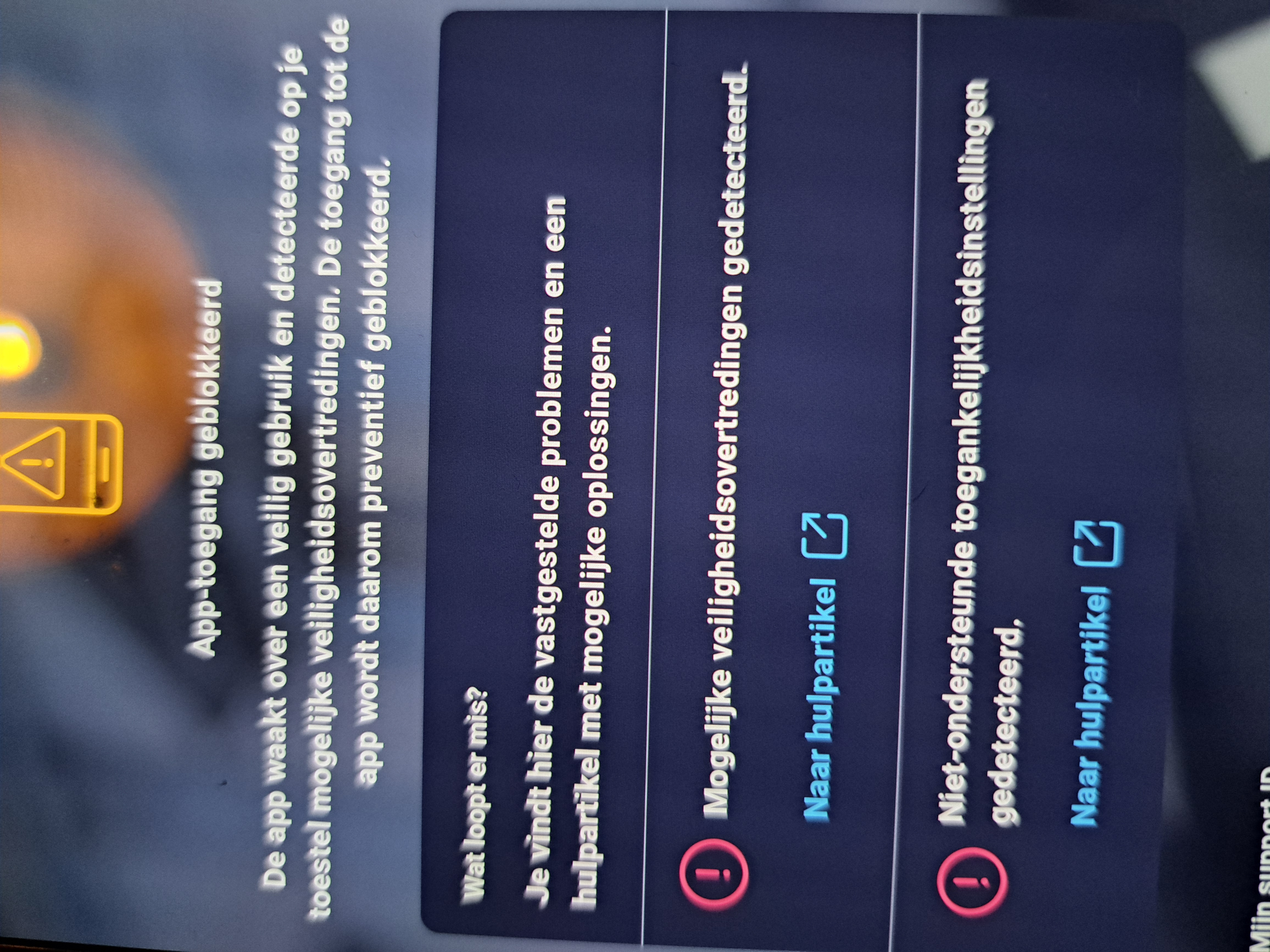 Geven die linken iets meer info? Android debugging aanstaan, of een 3rd party rom?Data technicus schreef: 3 maanden geleden App Mygov.be heeft veel te strenge eisen want geraakt al niet verder in de app en krijg deze melding.