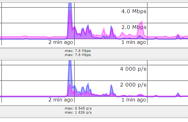In een aparte VLAN zit een machine die graag veel connecties kort open gooit, zonder daarbij echt traffic te doen.